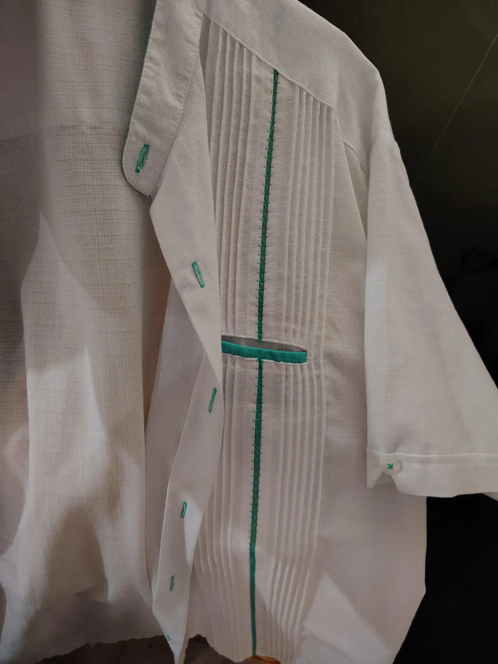 Nuestra guayabera está confeccionada en lino flameado de alta calidad , un tejido fresco, ligero y con textura natural que aporta carácter y sofisticación